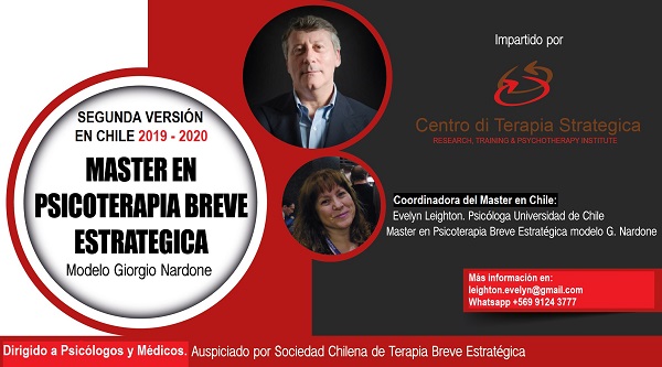 Dictan 2da versión del Máster en Psicoterapia Breve Estratégica 2019-2020 // Dos medias becas para socios SCPC Estimados socios a continuación les informamos la realización de la 2da. VERSIÓN DEL MÁSTER EN PSICOTERAPIA BREVE ESTRATÉGICA: modelo Giorgio Nardone. Hay disponible dos medias becas para socios activos con sus cuotas al día (ya adjudicada). Fecha: Abril 2019 a Octubre 2020. Informaciones e Inscripciones: Teléfonos: +56 9 9124 3777 e-mail: leighton.evelyn@gmail.com Institución Auspiciadora: SOCIEDAD CHILENA DE TERAPIA BREVE ESTRATEGICA… Read More